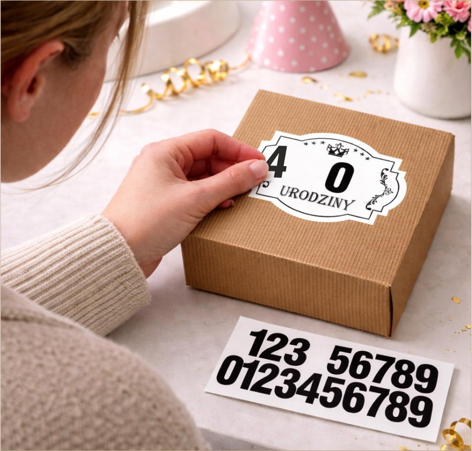 ☝️Do zestawu dołączone są naklejki z cyframi, dzięki którym samodzielnie umieszczasz na pudełku odpowiednią liczbę z wiekiem solenizanta.