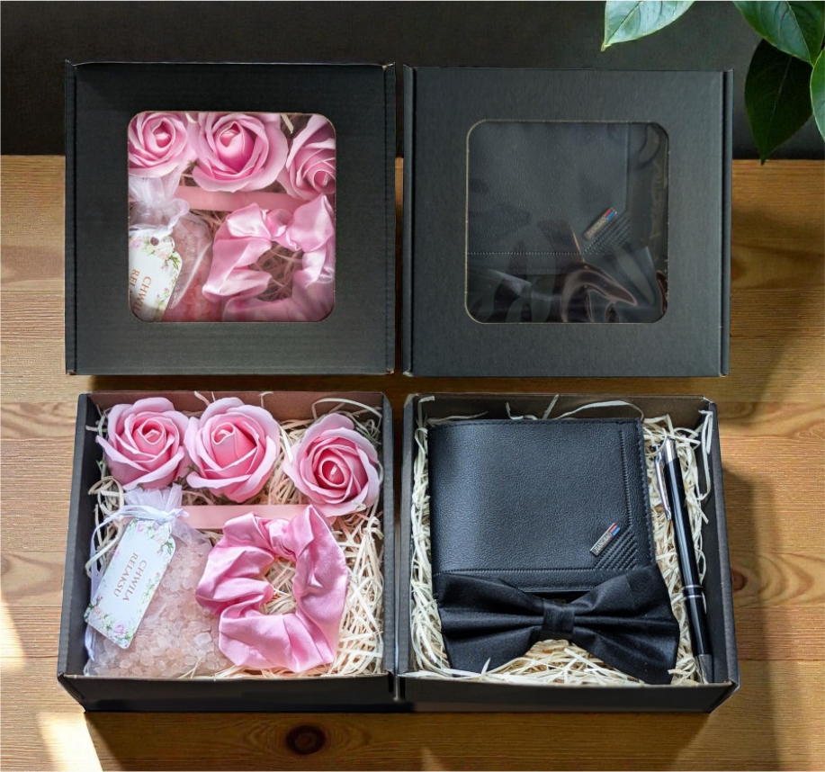 Każde pudełko zostało starannie skomponowane i zapakowane w eleganckie, czarne opakowanie z okienkiem, które już od pierwszego spojrzenia robi wrażenie.