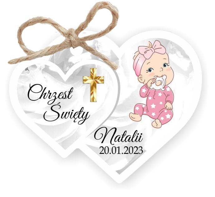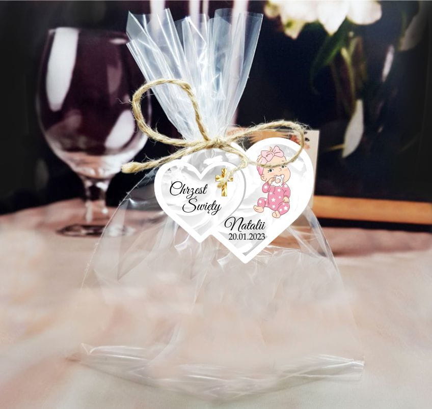 Zawieszka z imieniem i datą uroczystości będzie idealną ozdobą i dodatkiem do prezentu dla gości przybyłych na Chrzest.