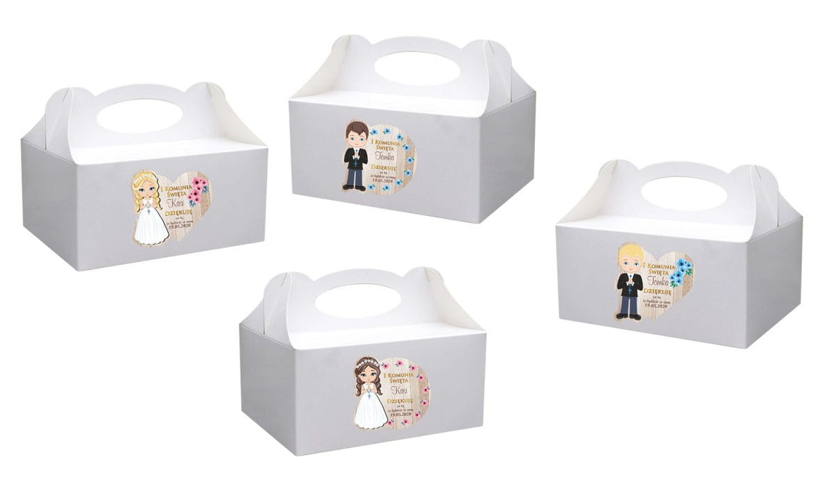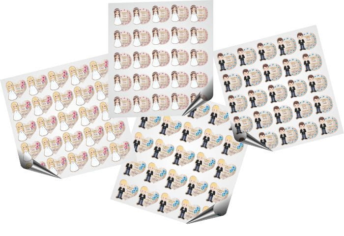 Naklejki samoprzylepne personalizowane, do ozdobienia np. upominków dla gości, dodatków na stół czy pudełek na ciasta.