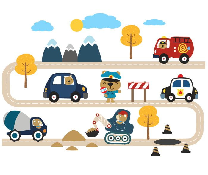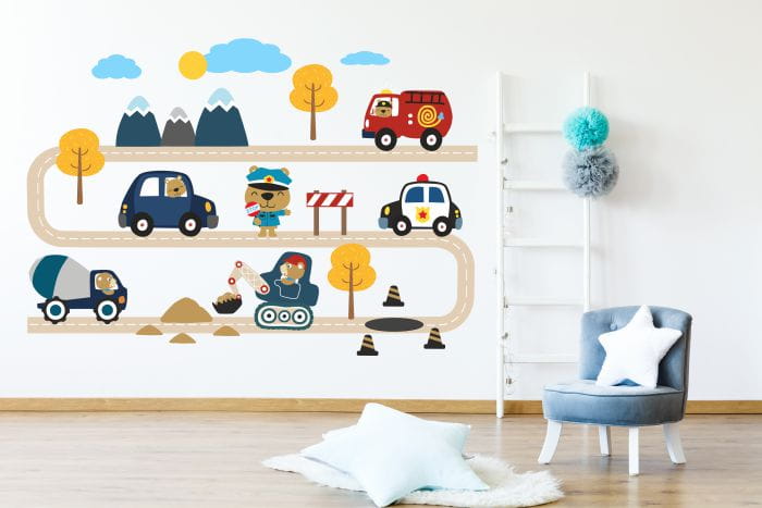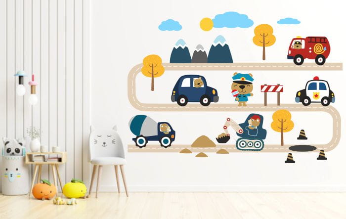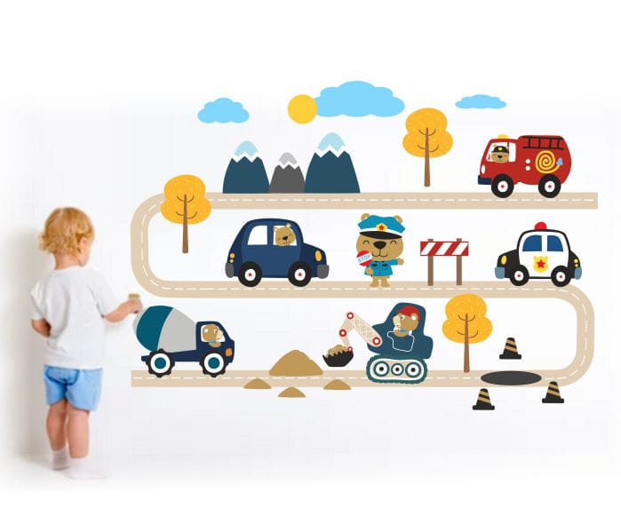 Plac budowy, Koparka, Droga, Tor, Naklejka dla dzieci TOR005