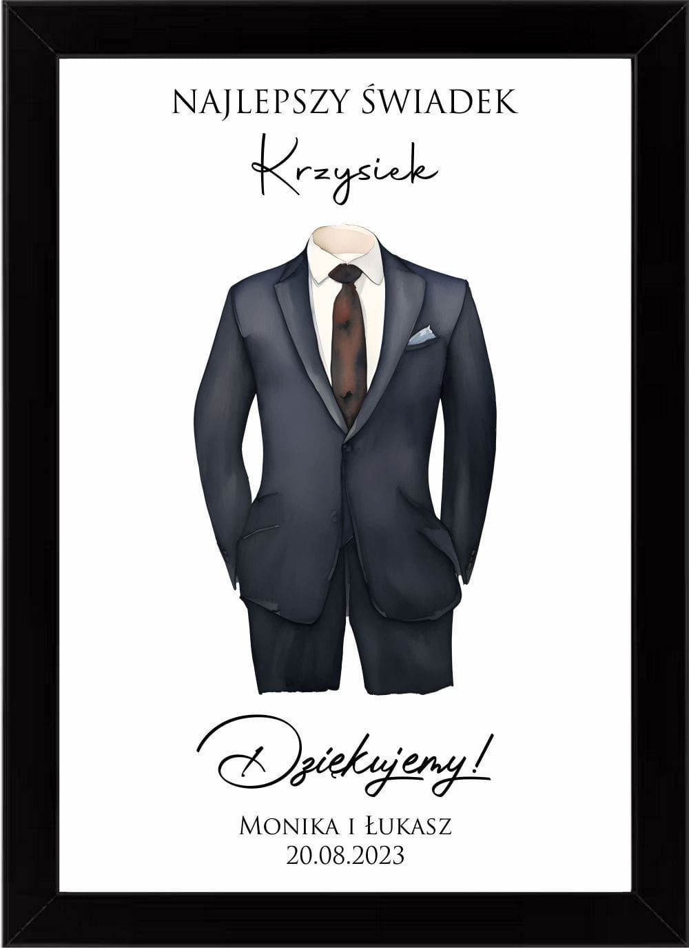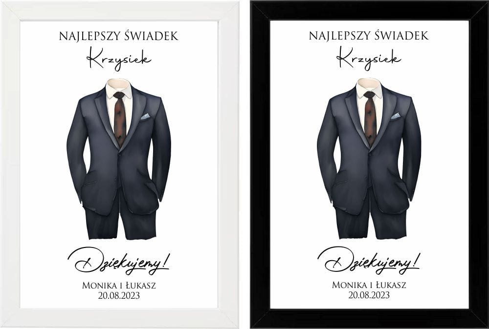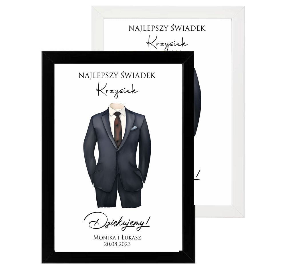 Plakat podziękowanie dla świadka w białej lub czarnej ramce, prezent dla najlepszego świadka.