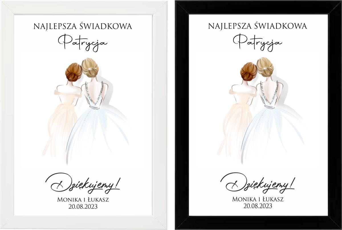 Plakat podziękowanie dla świadkowej w białej lub czarnej ramce, prezent dla najlepszej świadkowej.