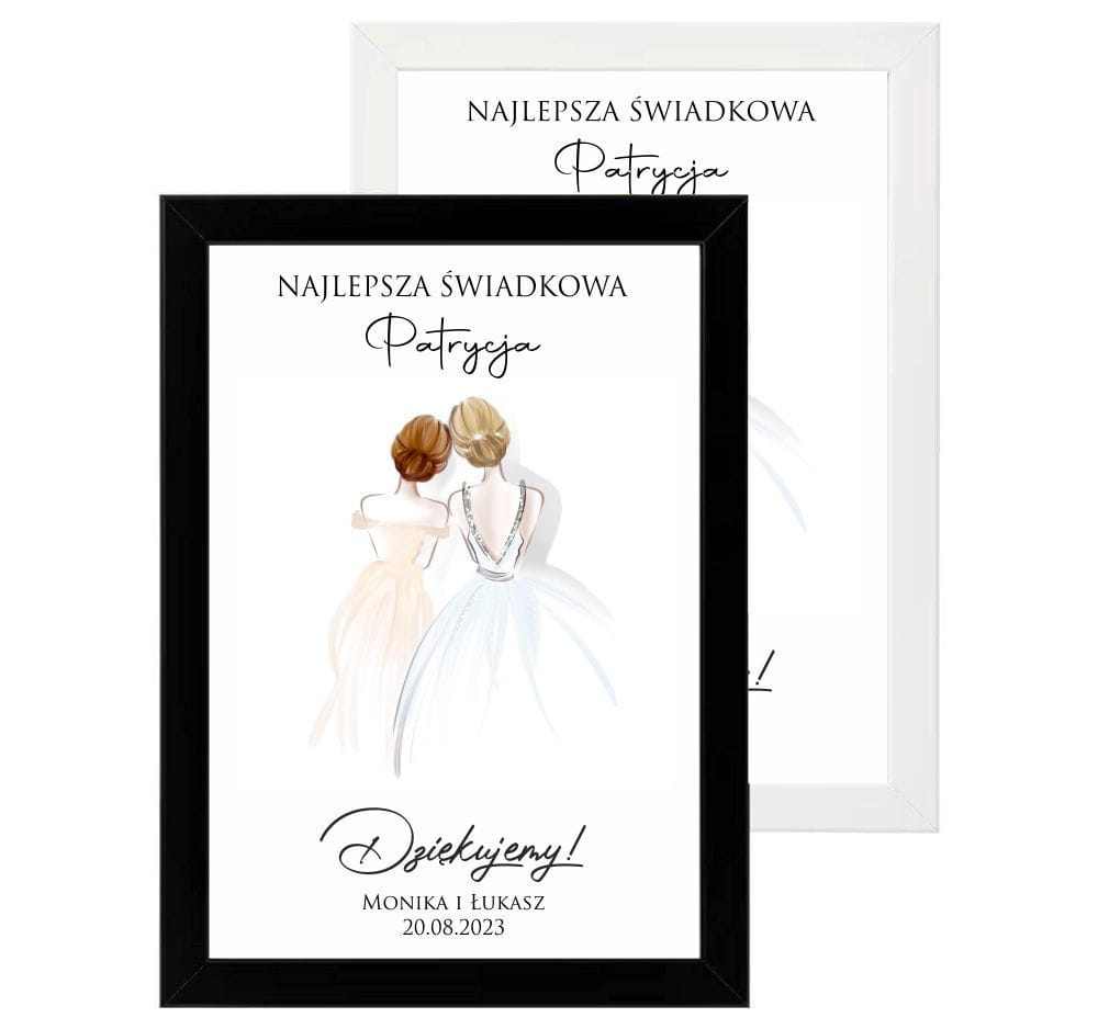 Plakat podziękowanie dla świadkowej w białej lub czarnej ramce, prezent dla najlepszej świadkowej PLAK760