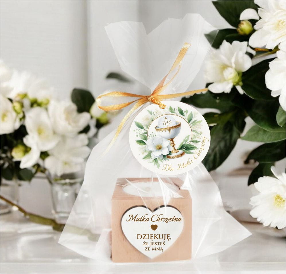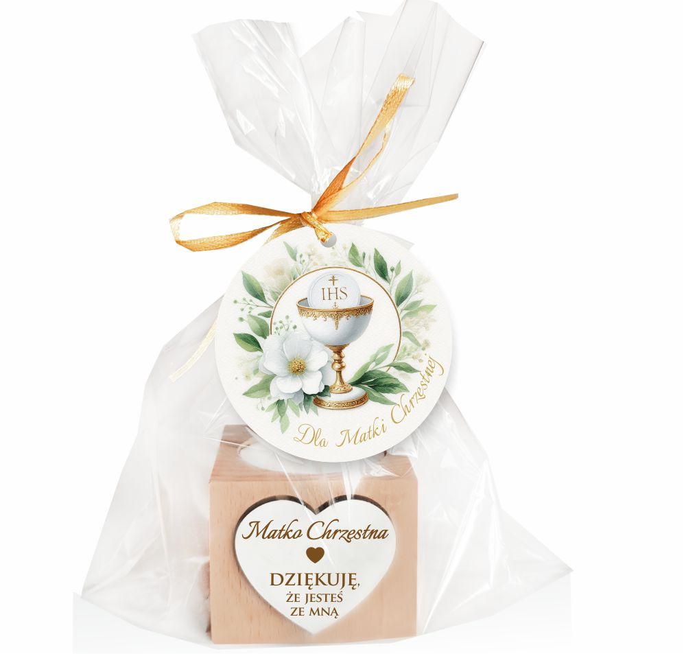 Drewniany świecznik z grawerowanym sercem to idealna pamiątka Pierwszej Komunii Świętej!