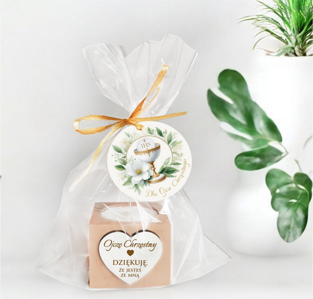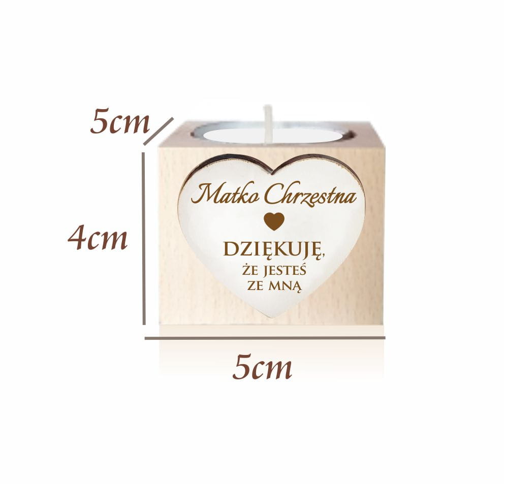 Drewniany świecznik z grawerowanym sercem to idealna pamiątka Pierwszej Komunii Świętej!