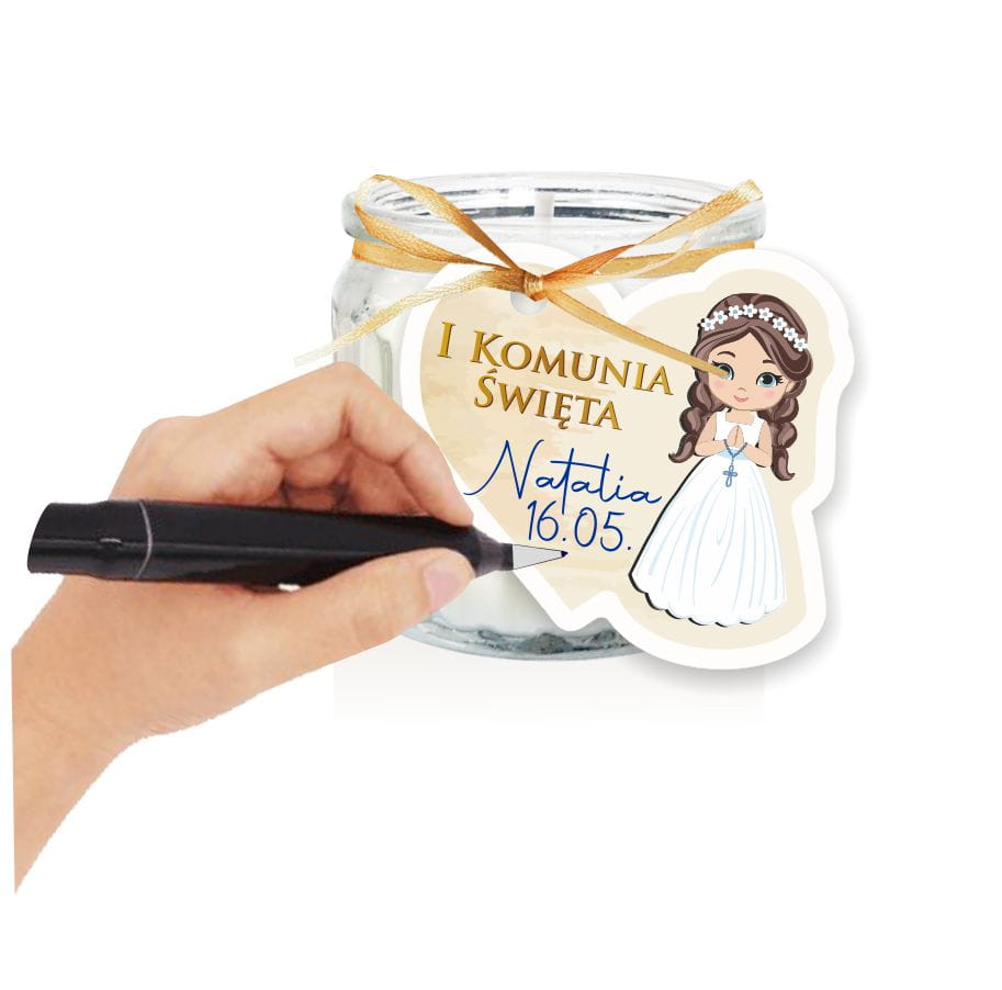 Podziękowania dla gości na Komunię Świeca Świeczka Dziewczynka