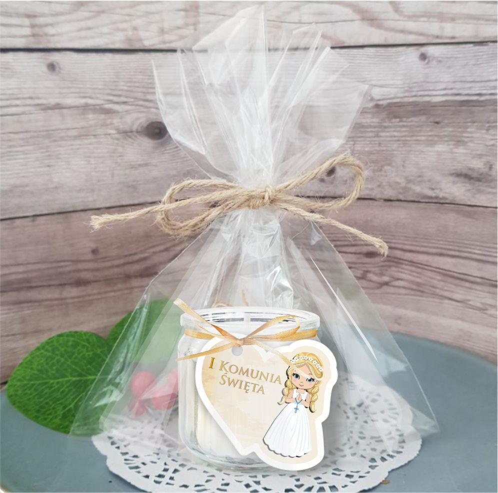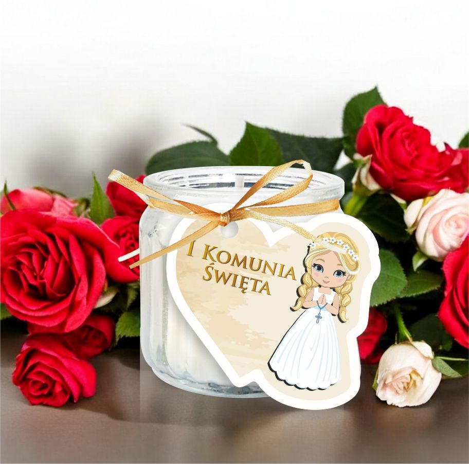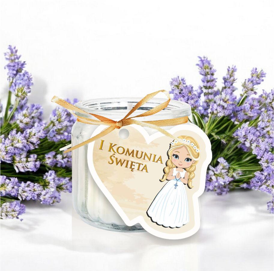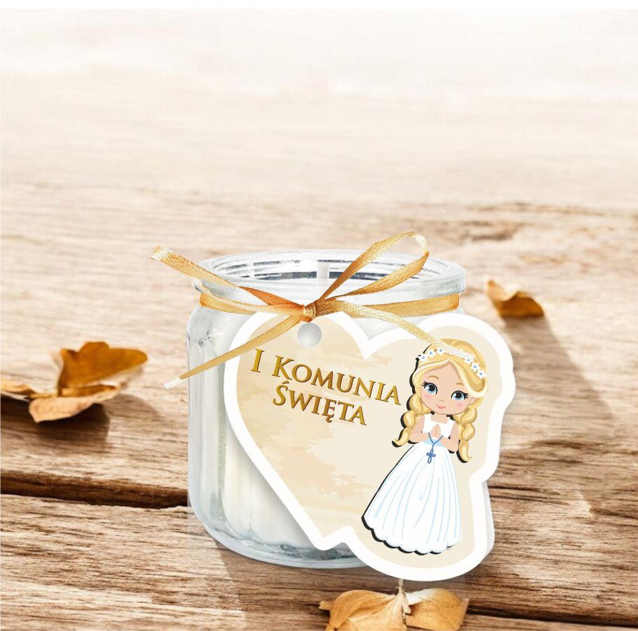 Podziękowanie dla gości KOMUNIA Świeca Świeczka Dziewczynka BLOND włosy
