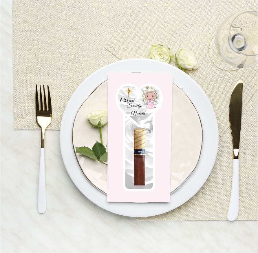 Podziękowanie dla gości Merci, Podkładka z aniołkiem na Chrzest Święty