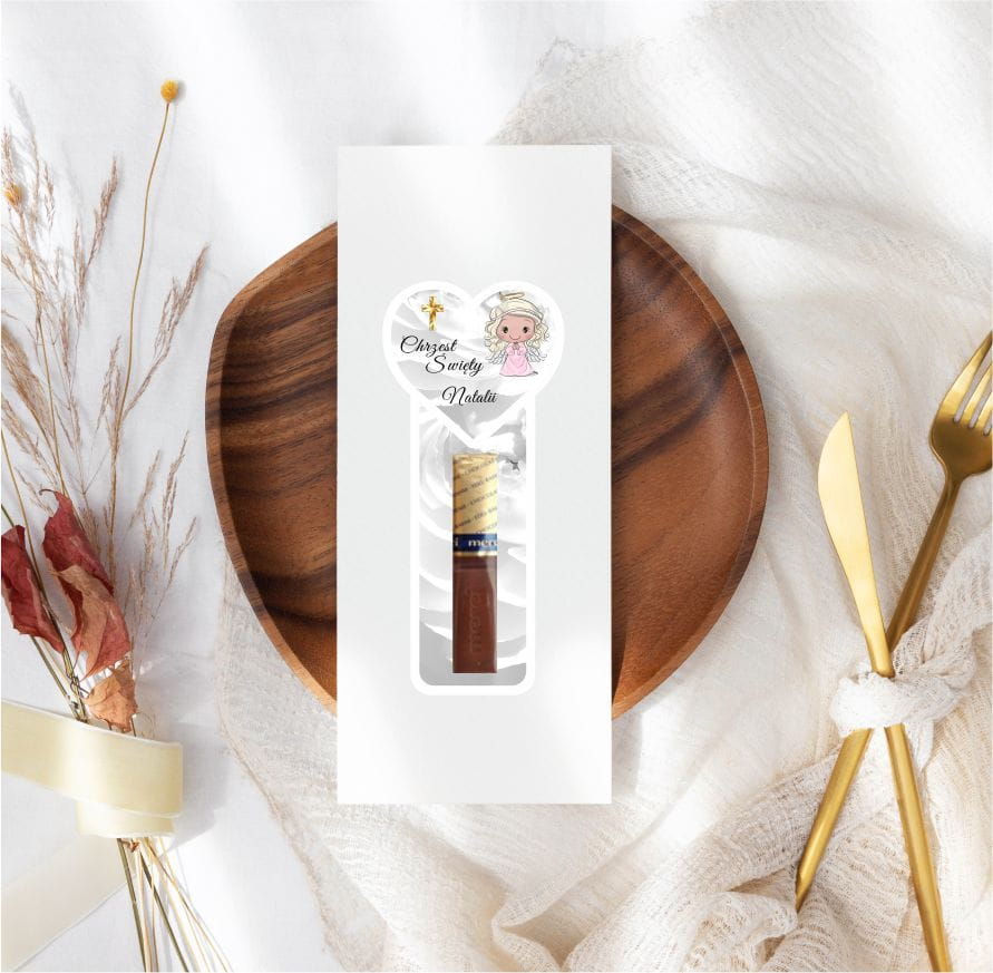 Podkładki na czekoladki MERCI, podziękowanie dla gości na Chrzest