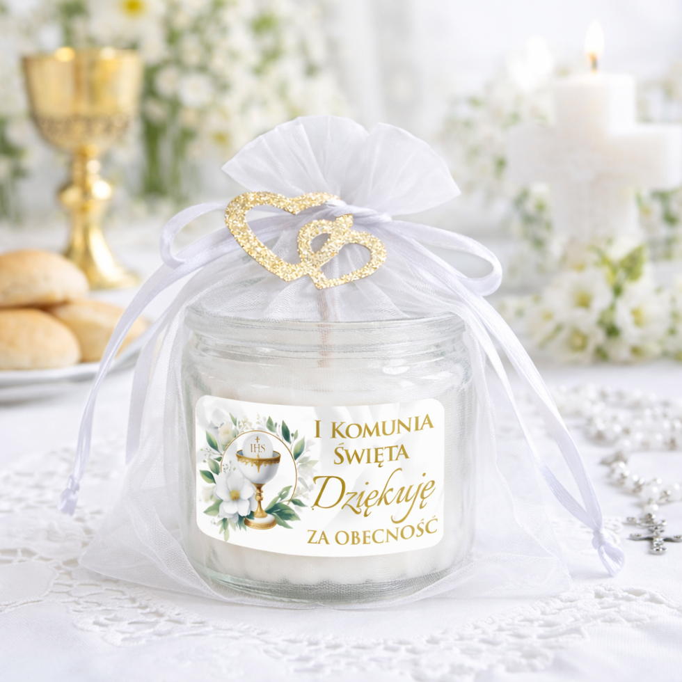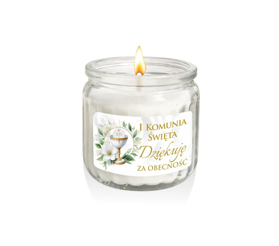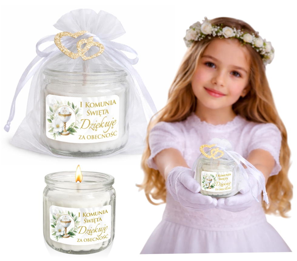 Podziękowanie dla gości na komunię Świeczka zapachowa prezent upominek