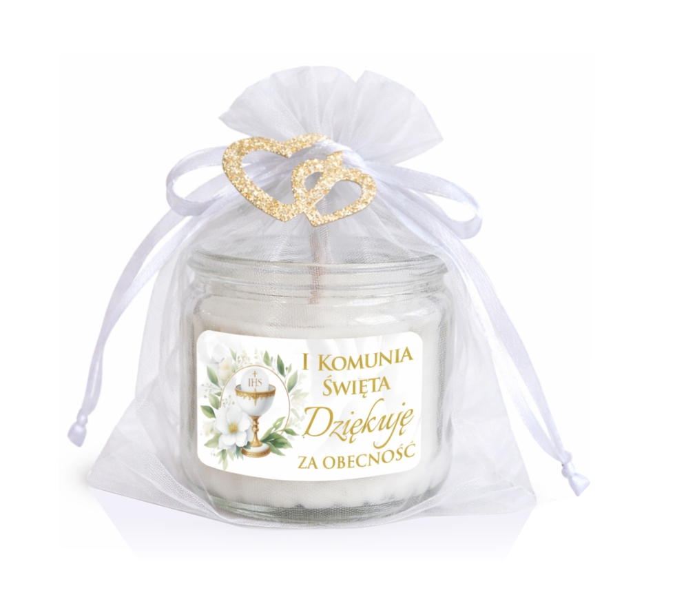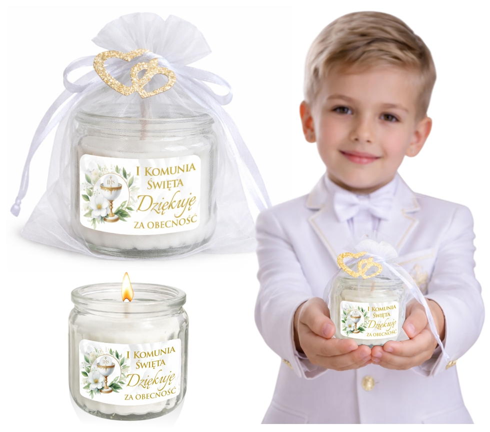 Podziękowanie dla gości na komunię Świeczka zapachowa prezent upominek