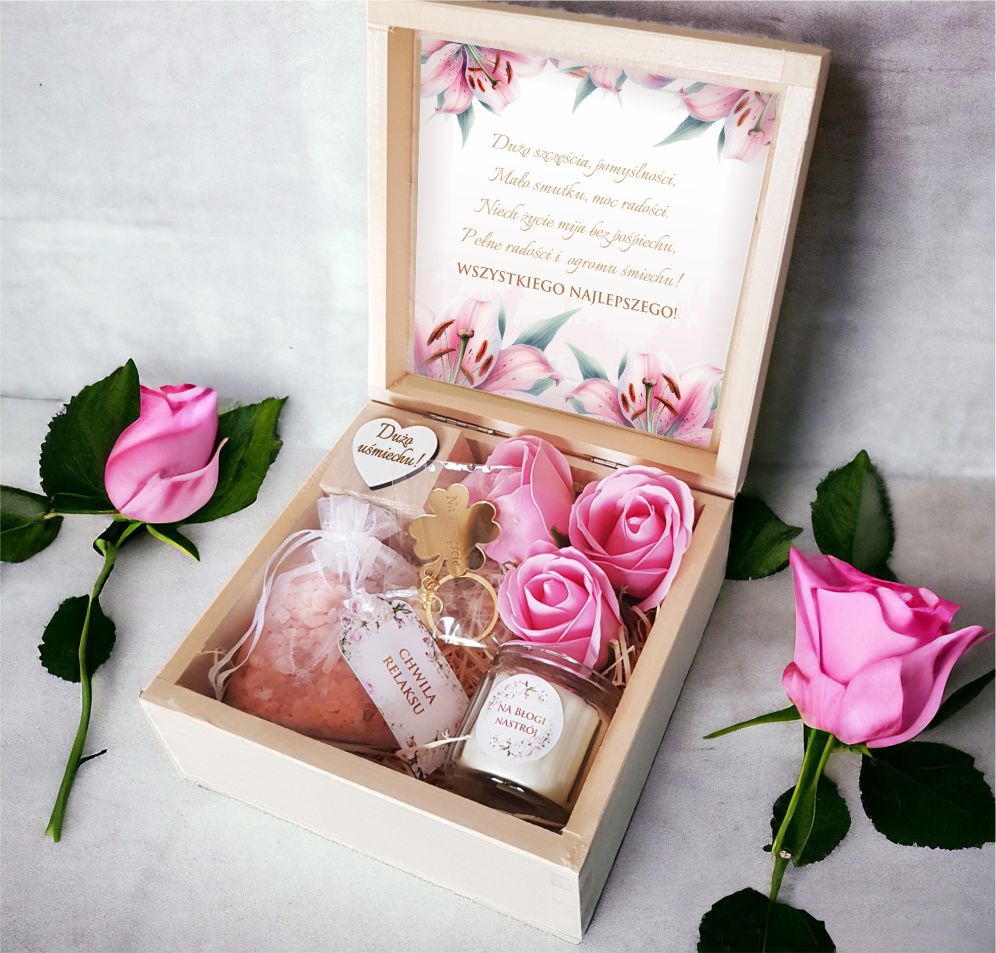 Prezent DZIEŃ KOBIET dla Dziewczyny Żony Mamy Babci FLOWER BOX KOSZ PREZENTOWY❤️