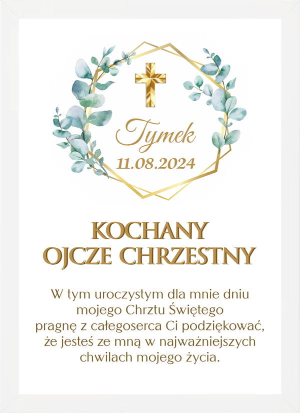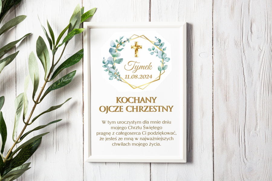 Plakat w ramie Podziękowanie dla Ojca Chrzestnego z okazji Chrztu Świętego.