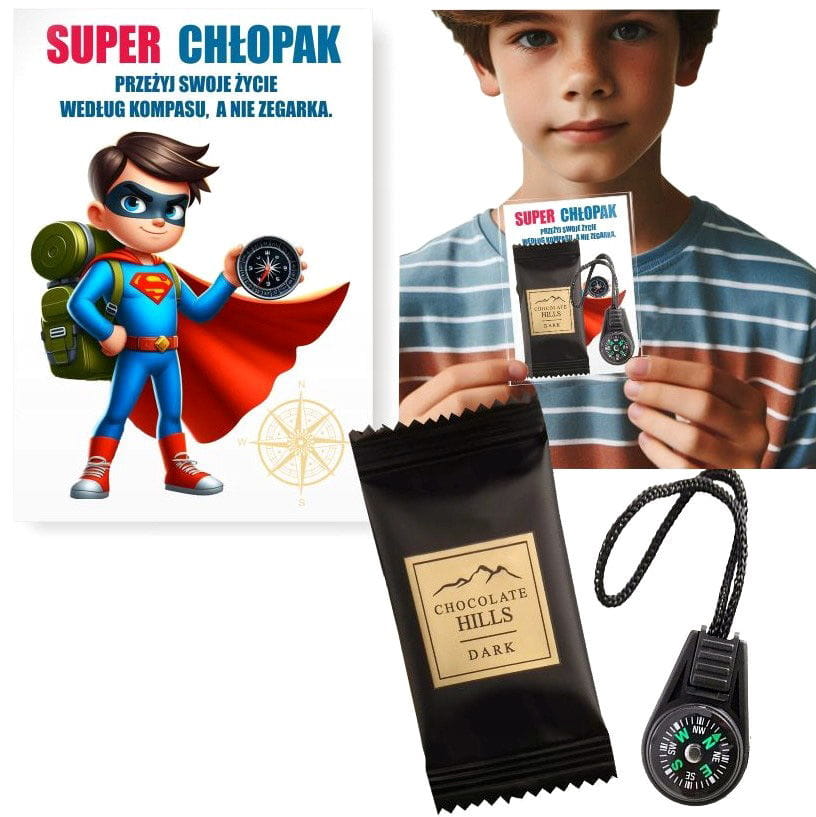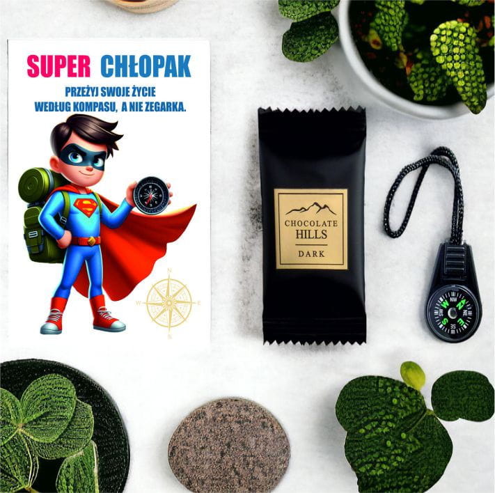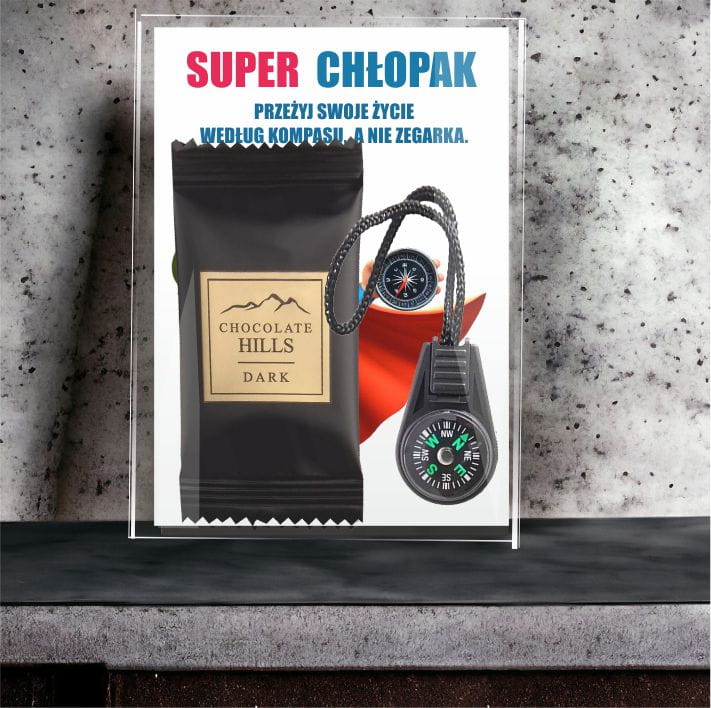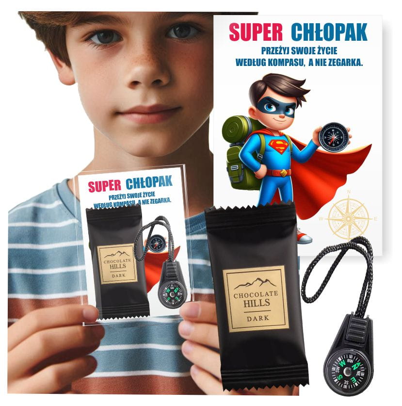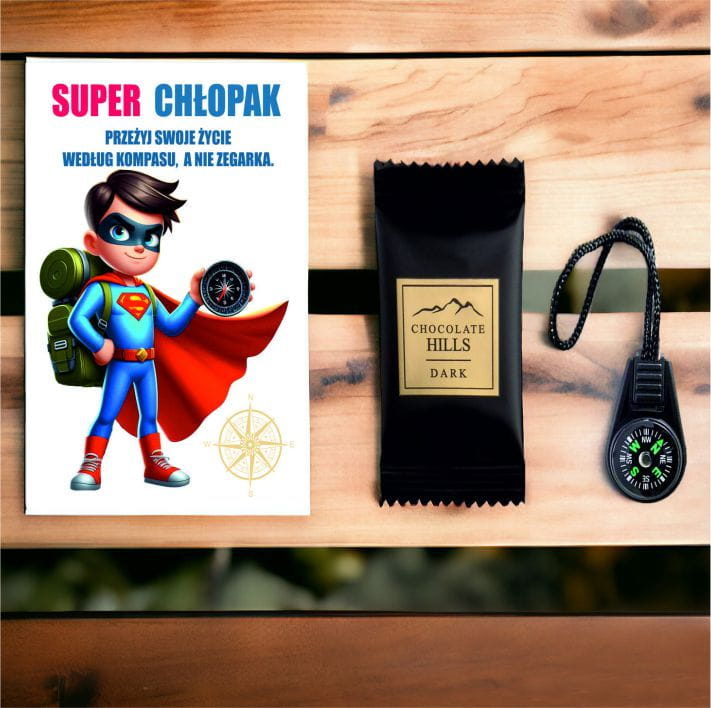 Prezent na DZIEŃ CHŁOPAKA kompas czekoladka dla chłopaków SUPER CHŁOPAK