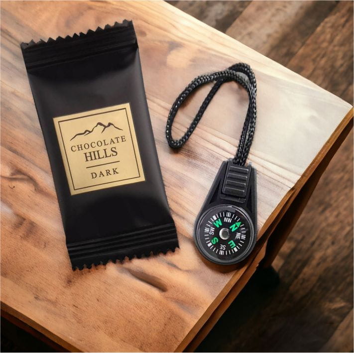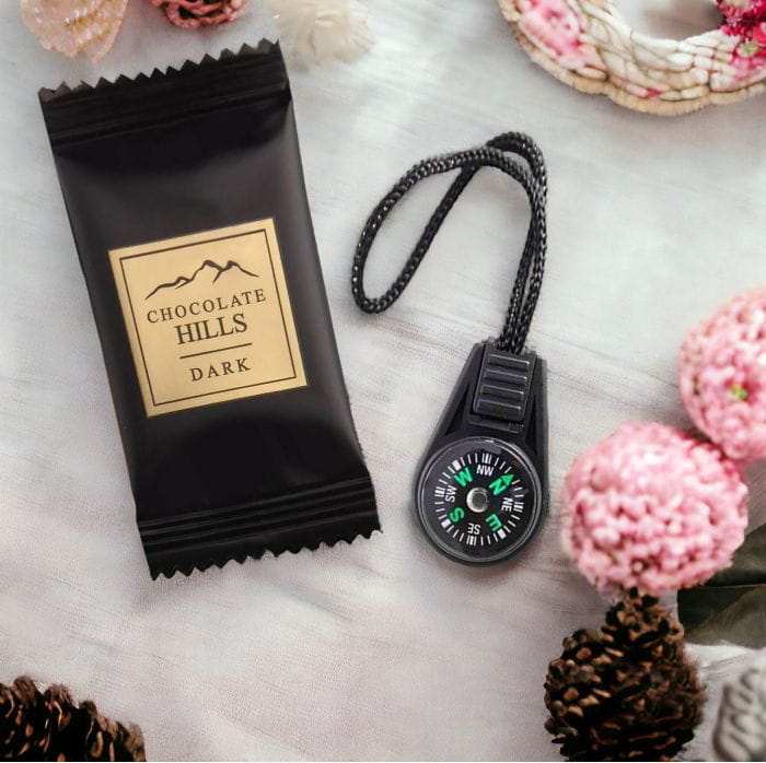 Mini kompas z czekoladką! Ten uroczy komplet to nie tylko pyszna czekoladka, ale także praktyczny kompas, który można przypiąć do kluczy czy plecaka. Idealny towarzysz do codziennych podróży i eksploracji, zapewniający orientację w każdej sytuacji.