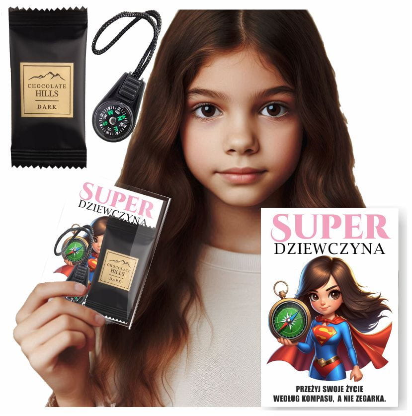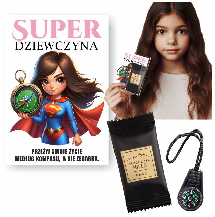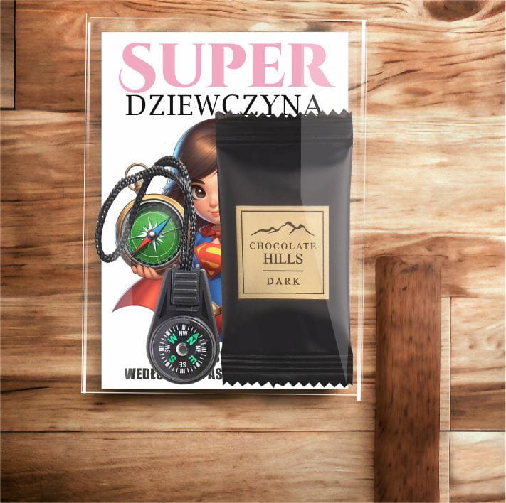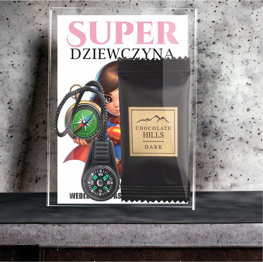 Prezent na DZIEŃ DZIEWCZYNY dla dziewczyn kompas czekoladka SUPER DZIEWCZYNA