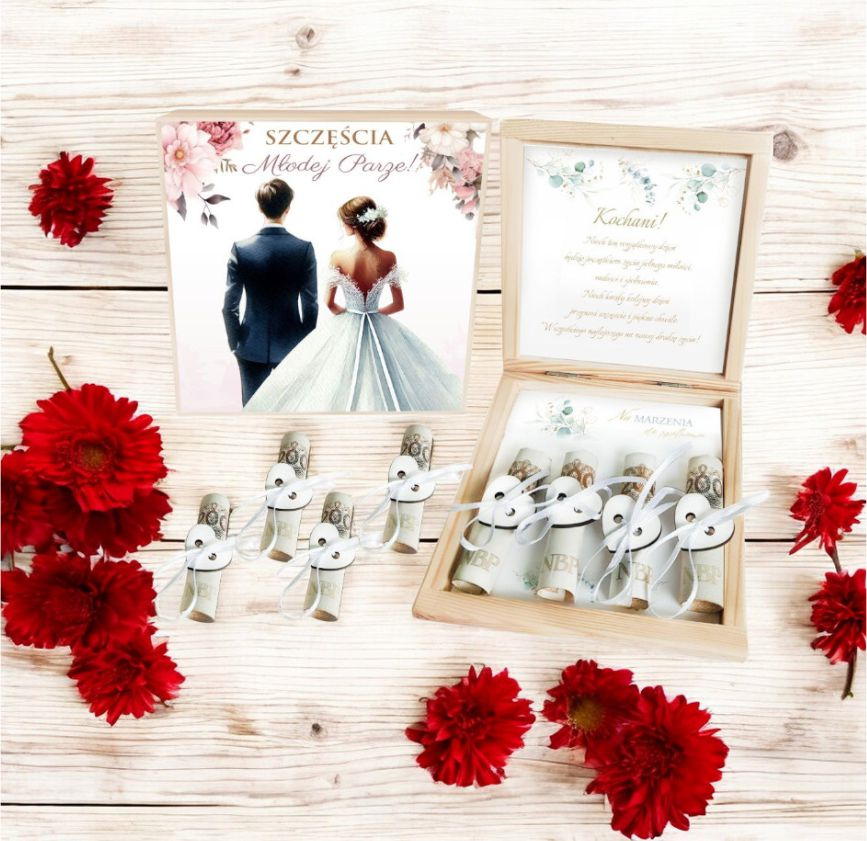 Prezent na ŚLUB Pudełko na pieniądze na ŚLUB Pamiątka dla młodej pary BOX