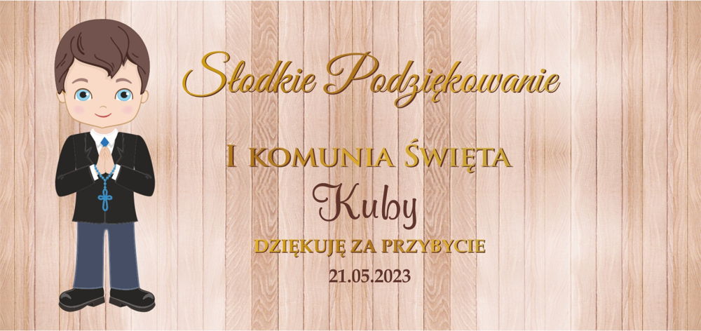 Naklejki na ciasto komunijne to uroczy dodatek, który podkreśli wyjątkowy charakter tego dnia. Znajdziesz wśród nich różnorodne motywy związane z Pierwszą Komunią Świętą, takie jak hostie, kielichy, oraz wizerunki dzieci komunijnych. Naklejki na ciasto komunijne są w pełni personalizowane.