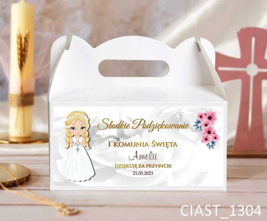 Pudełka na ciasto na I Komunię Świętą, słodkie podziękowanie I Komunia Święta.