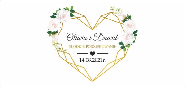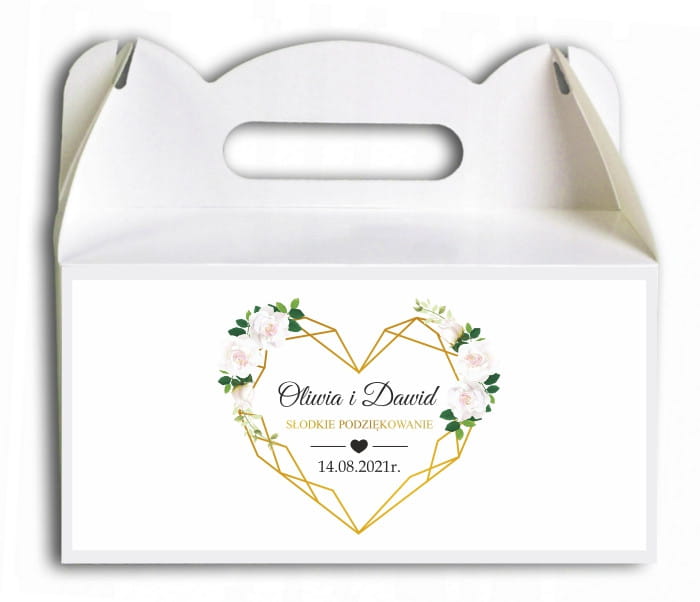 Pudełko na ciasto, Podziękowania dla gości, Białe róże, kwiaty, złota ramka