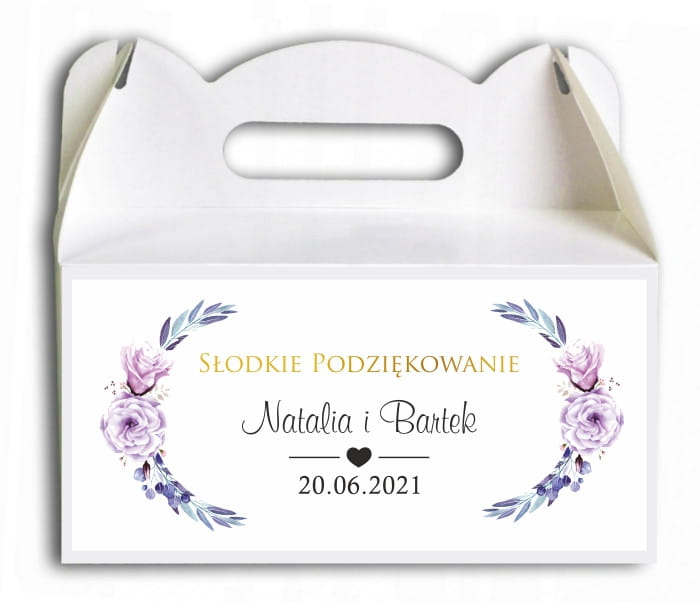 Pudełko na ciasto, słodkie podziękowanie dla gości, Fioletowe kwiaty
