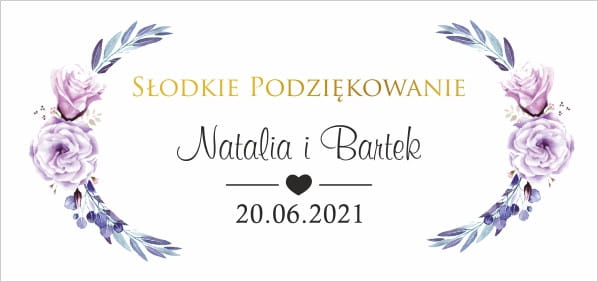Pudełko na ciasto, Podziękowania dla gości, Fioletowe kwiaty ze złotą ramką CIAS505