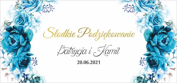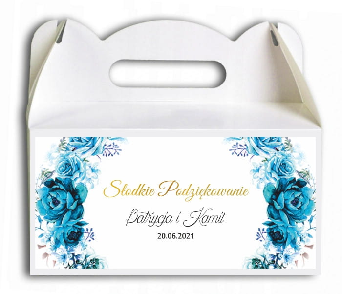 Pudełko na ciasto, Podziękowania dla gości, Wianek z niebieskich kwiatów, niebieskie róże CIAS512