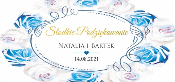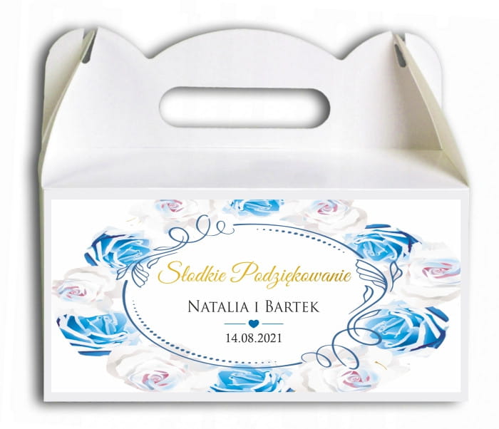 Pudełko na ciasto, Podziękowania dla gości, białe i niebieski róże CIAS520