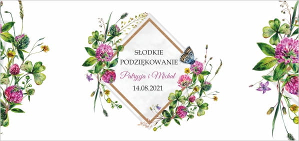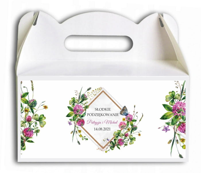 Pudełko na ciasto, Podziękowania dla gości, polne kwiaty, koniczyna, motyl CIAS516