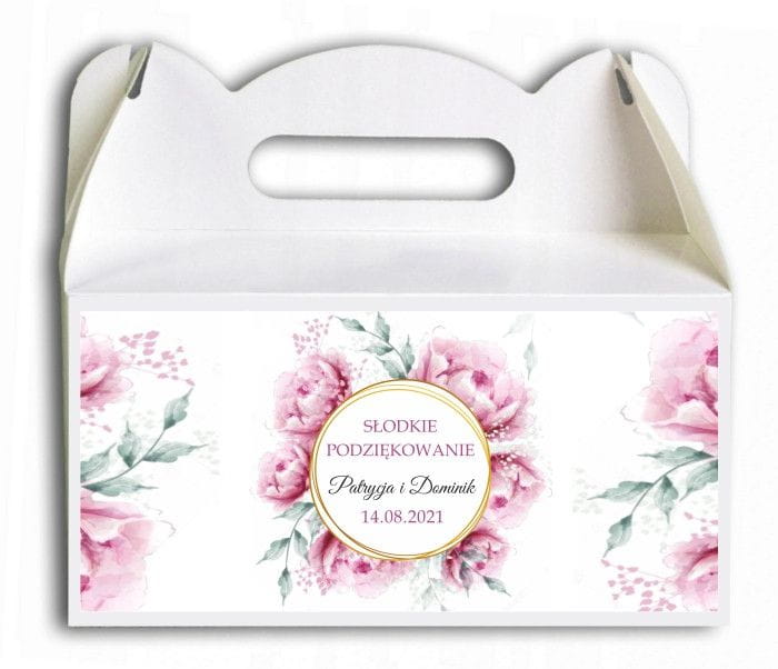 Pudełko na ciasto, Podziękowania dla gości,różowe kwiaty, akwarelowe róże CIAS518