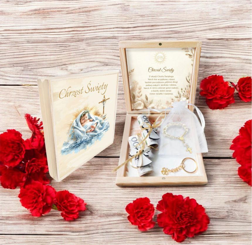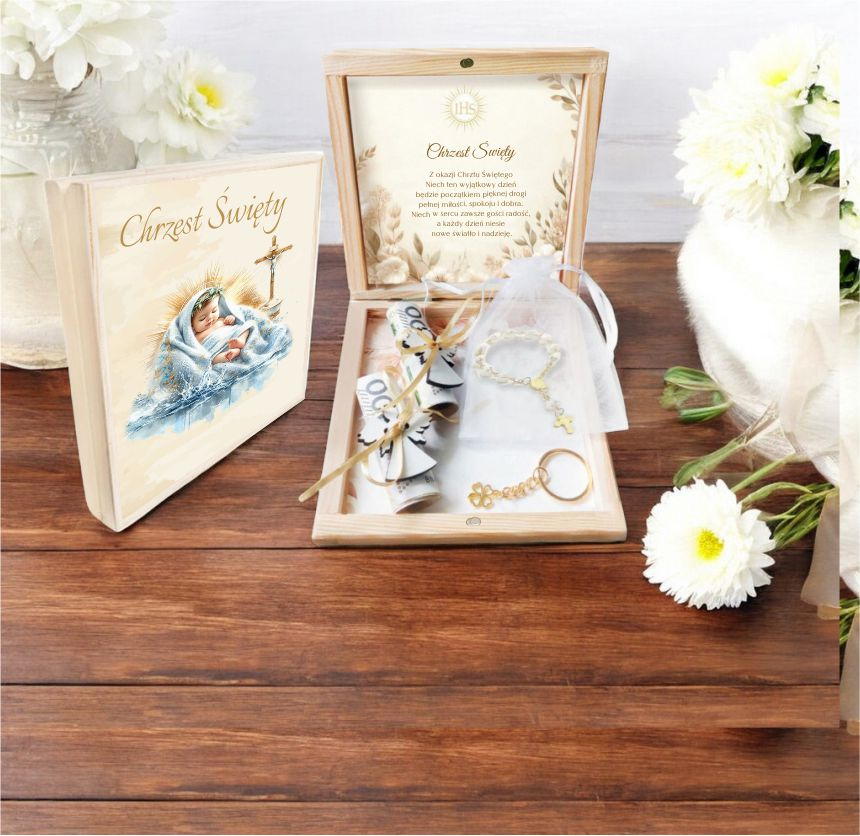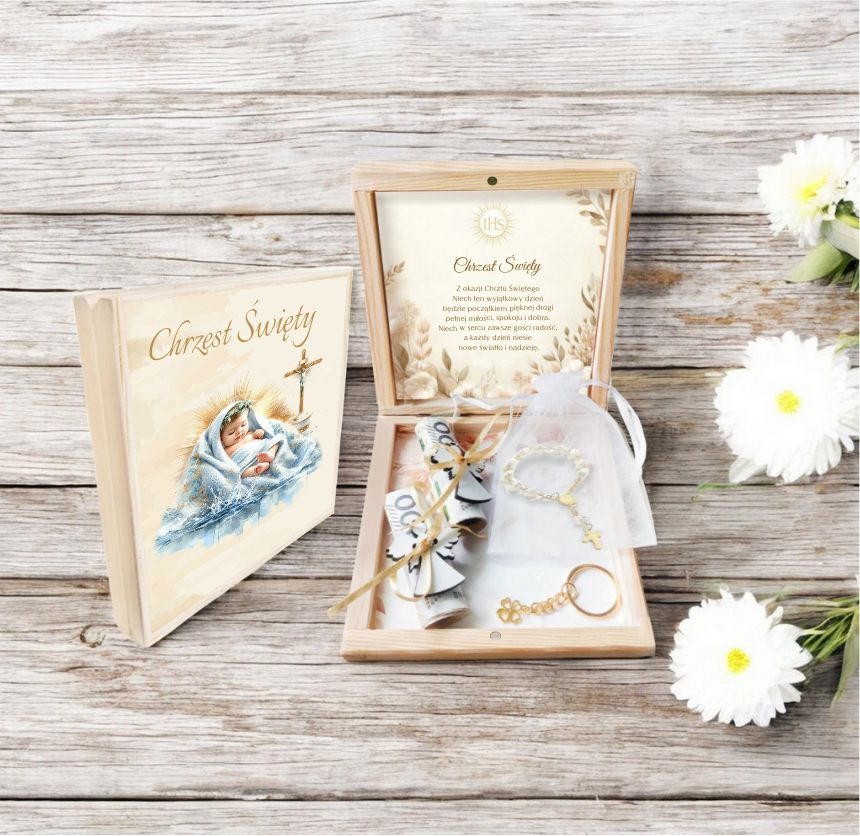 Chrzest Święty to wyjątkowy dzień, który będzie pełen symboliki i wartości. Nasze Pudełko Pamiątki Chrztu Świętego to idealny prezent, aby uczcić ten niezwykły moment w życiu dziecka.