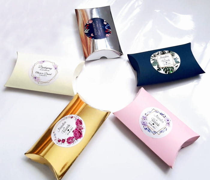Pudełka otrzymasz w postaci rozłożonej, na płasko. Pudełka przygotowane są do błyskawicznego złożenia bez użycia kleju! Naklejka do samodzielnego przyklejenia.
