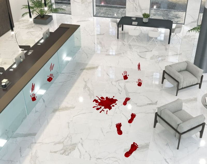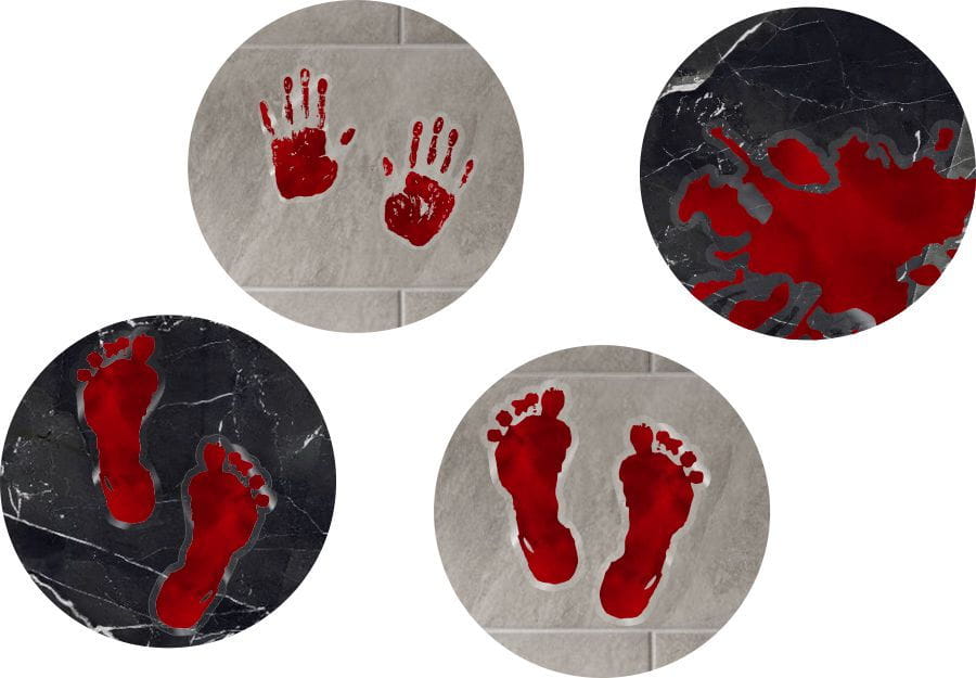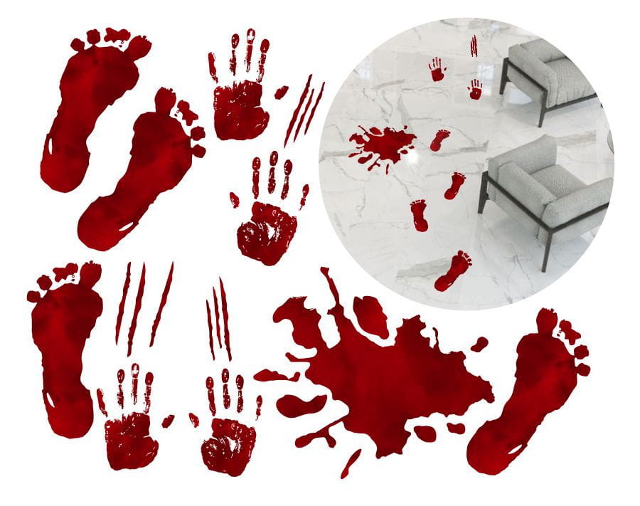Przygotuj się na niezapomnianą imprezę z naszymi naklejkami "Ślady Krwi". Doskonałe dla miłośników horrorów.
