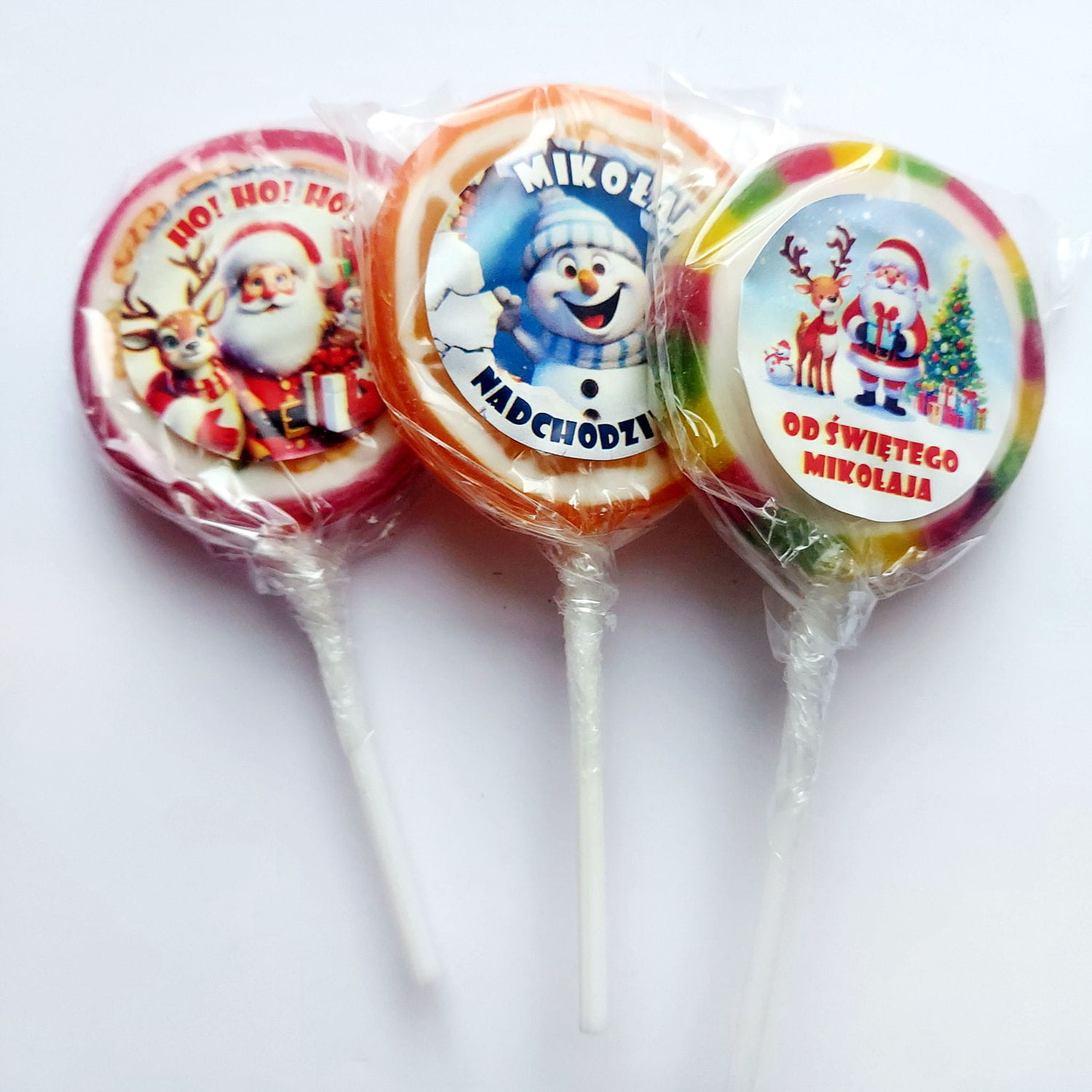 Świąteczne lizaki dla dzieci Lizak owocowy z naklejkami Świątecznymi
