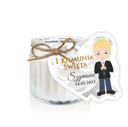 Świeca - podziękowanie dla gości na Pierwszą Komunię od chłopca