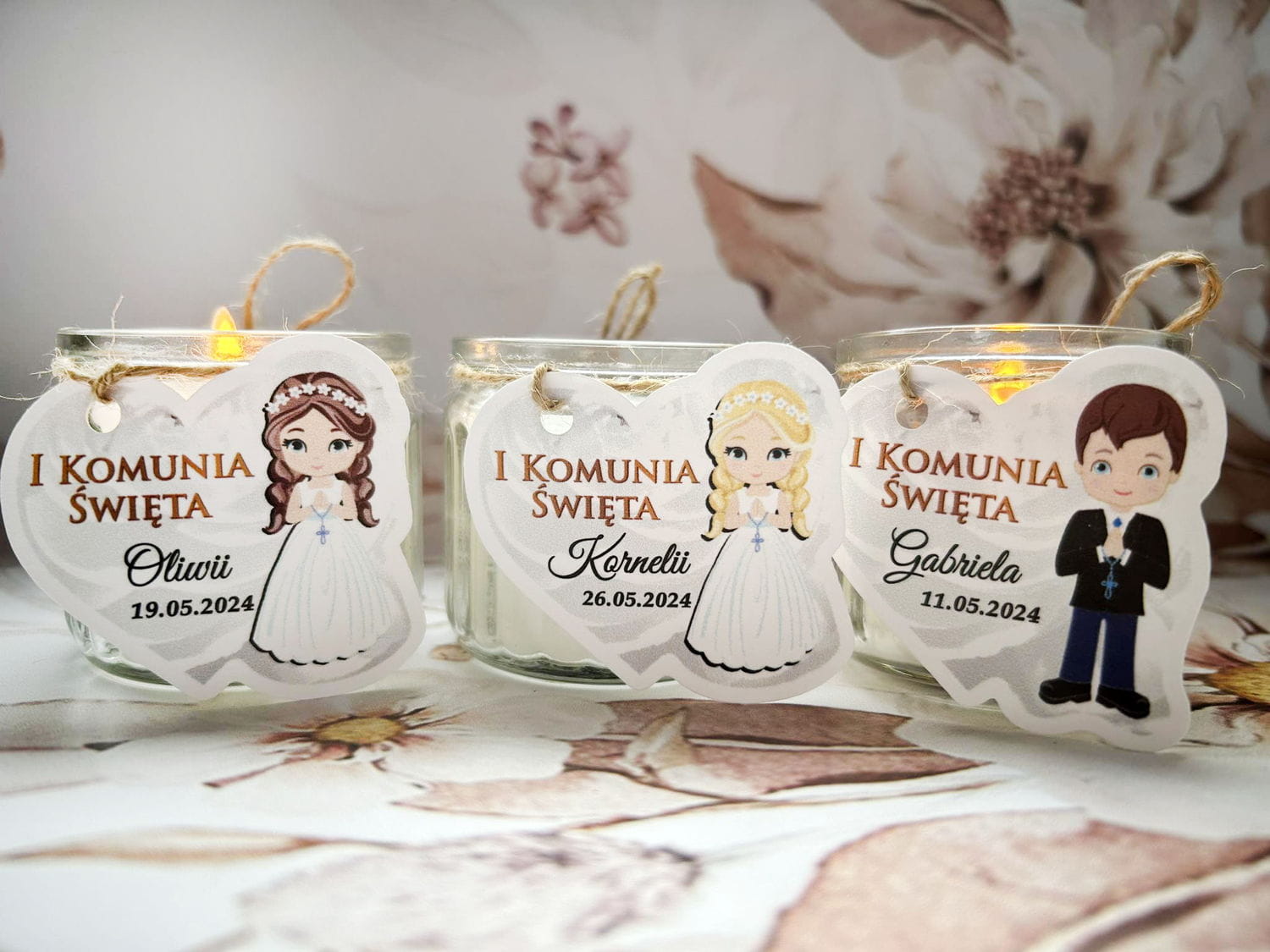 Przepiękne świeczki będą wspaniałym podziękowaniem dla gości, za przybycie na uroczystość Pierwszej Komunii Świętej.
