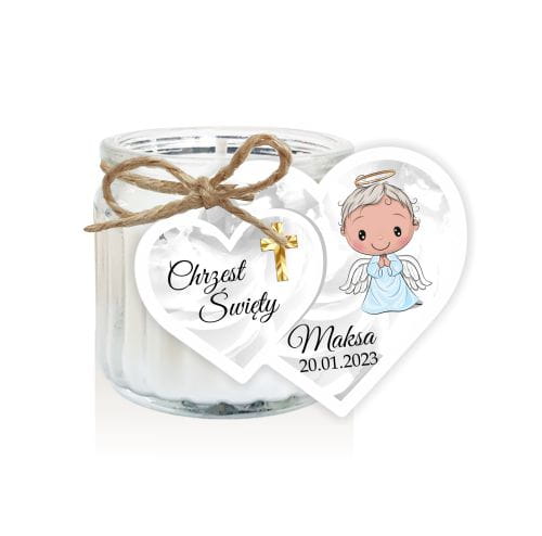 Personalizowana świeczka z zawieszką, niebieski aniołek