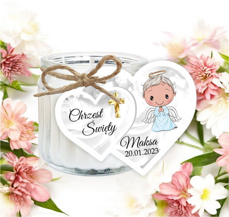 Świeca zapachowa, Podziękowanie dla gości na Chrzest, Świeczka, niebieski Aniołek