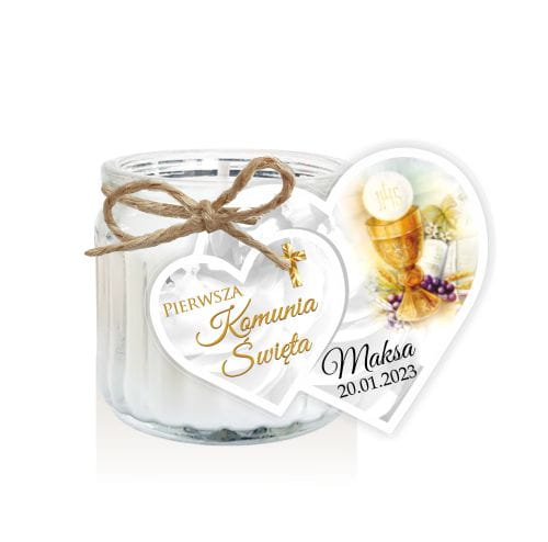 Świeczka z zawieszką podziękowanie dla gości na Pierwszą Komunię