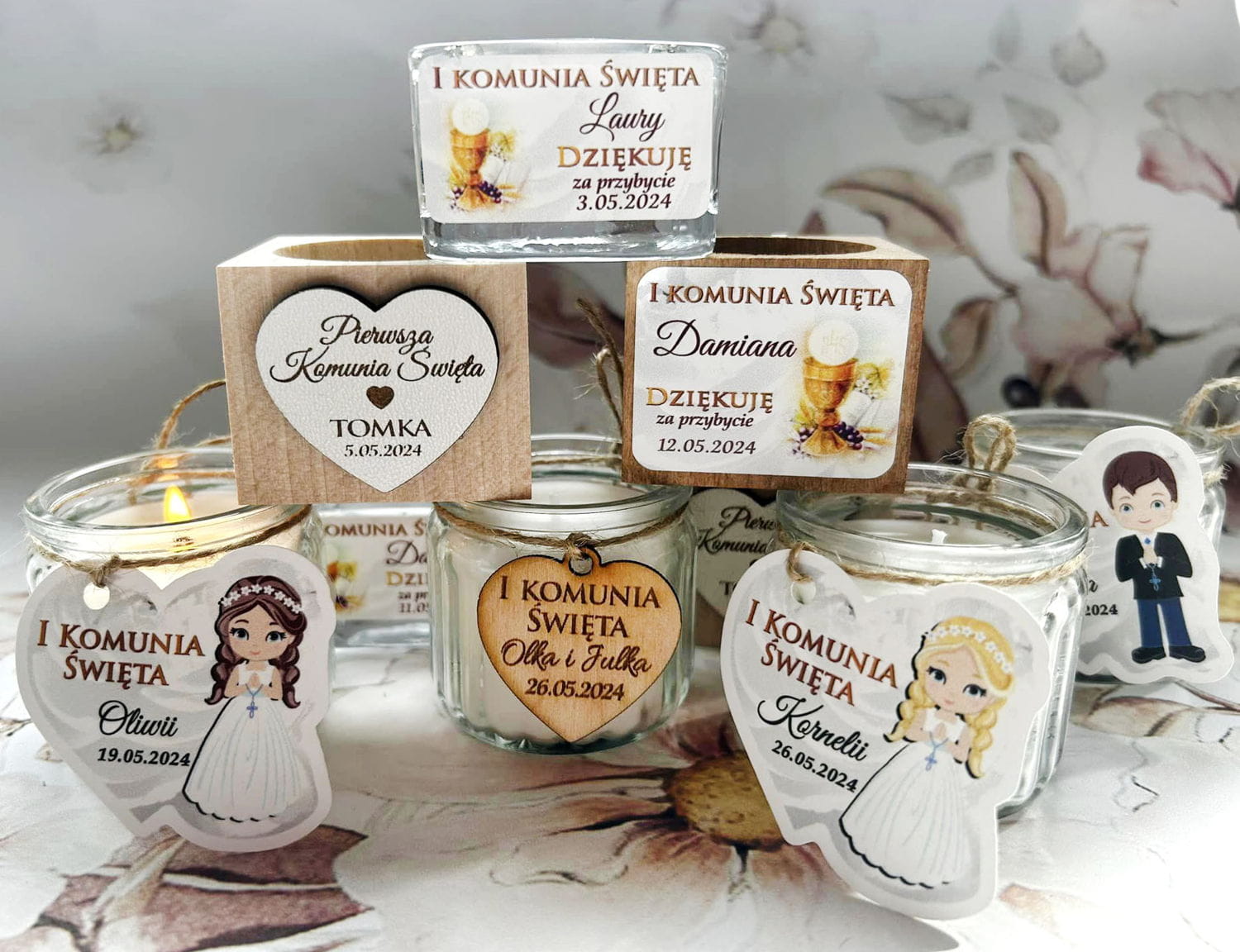 Przepiękne świeczki będą wspaniałym podziękowaniem dla gości, za przybycie na uroczystość Pierwszej Komunii Świętej.