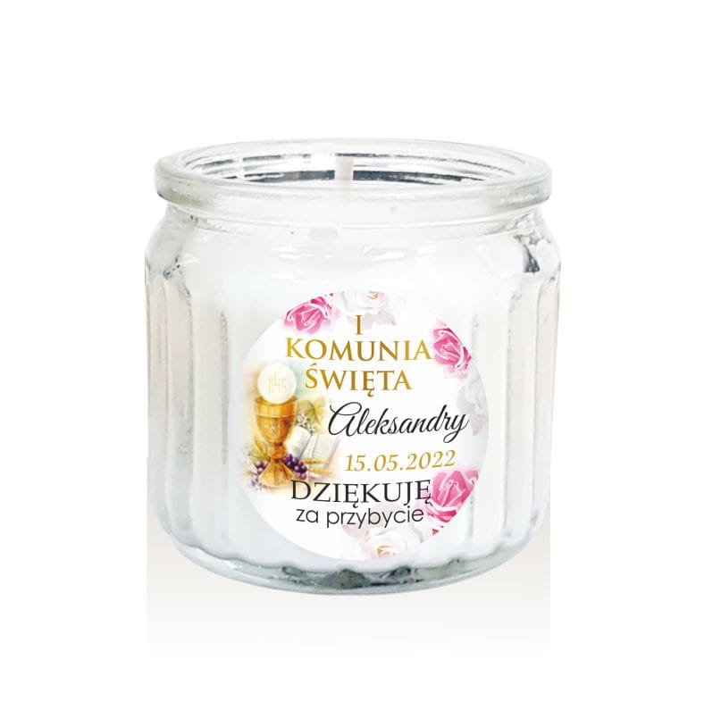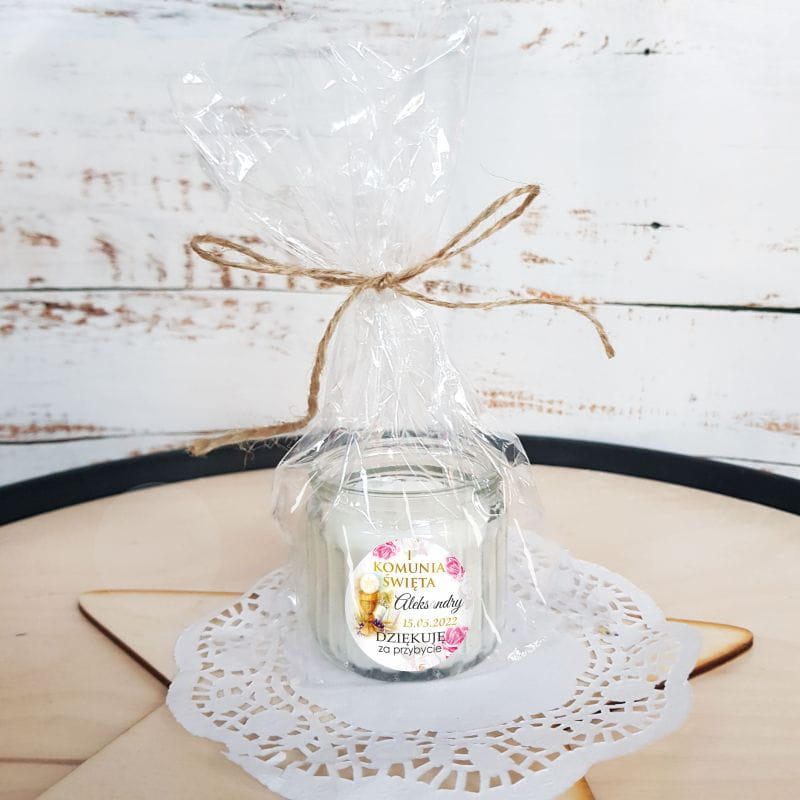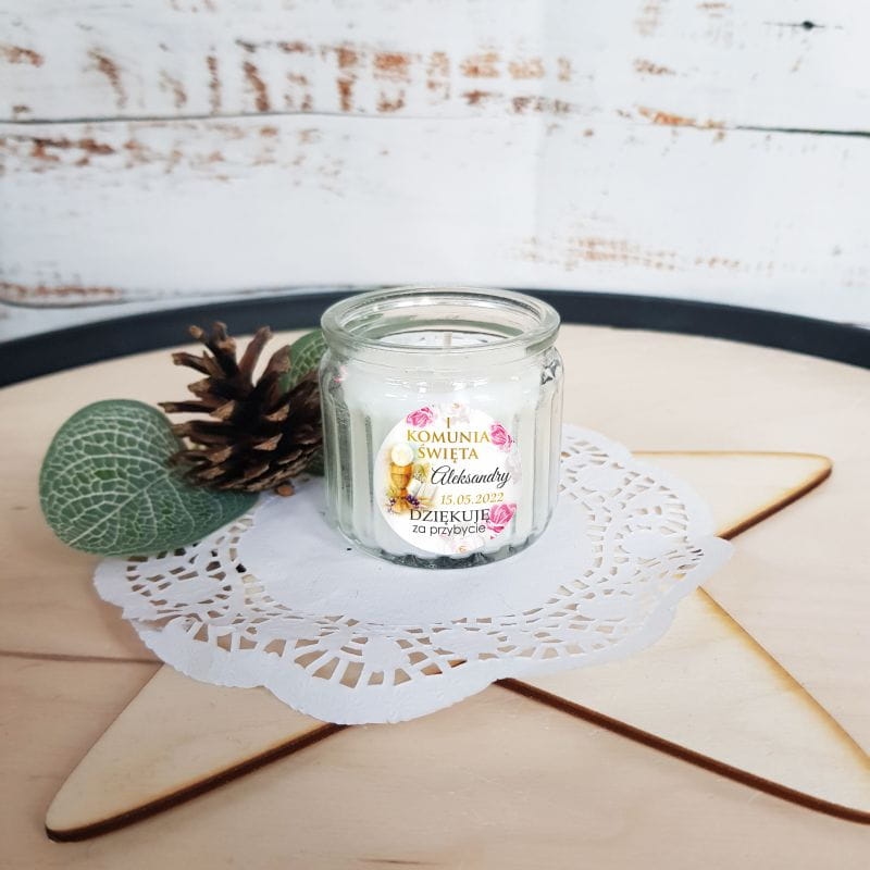 Świeczka zapachowa z Hostią, podziękowanie dla gości na Komunię