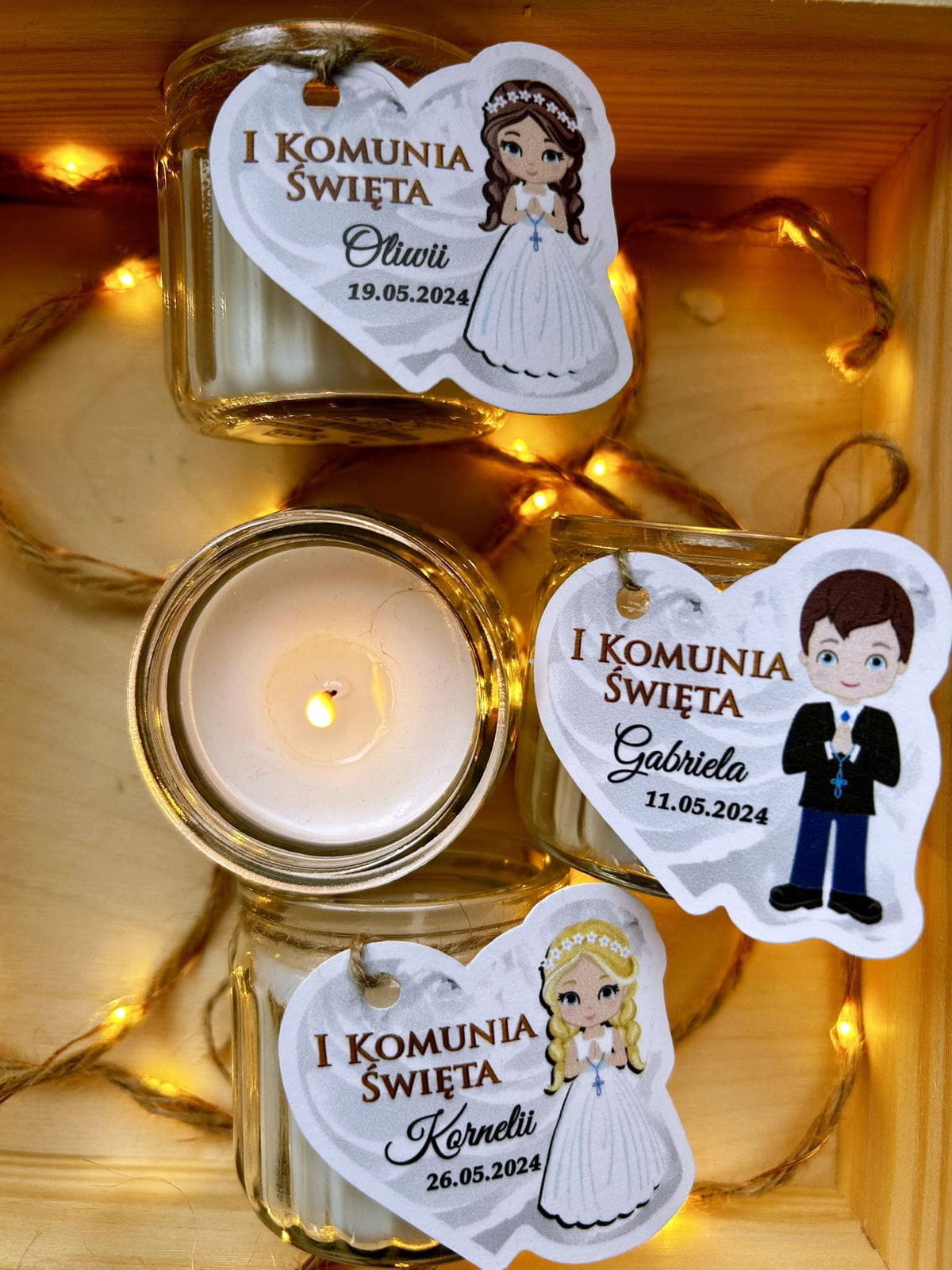 Świeca - podziękowanie dla gości na Pierwszą Komunię Świętą