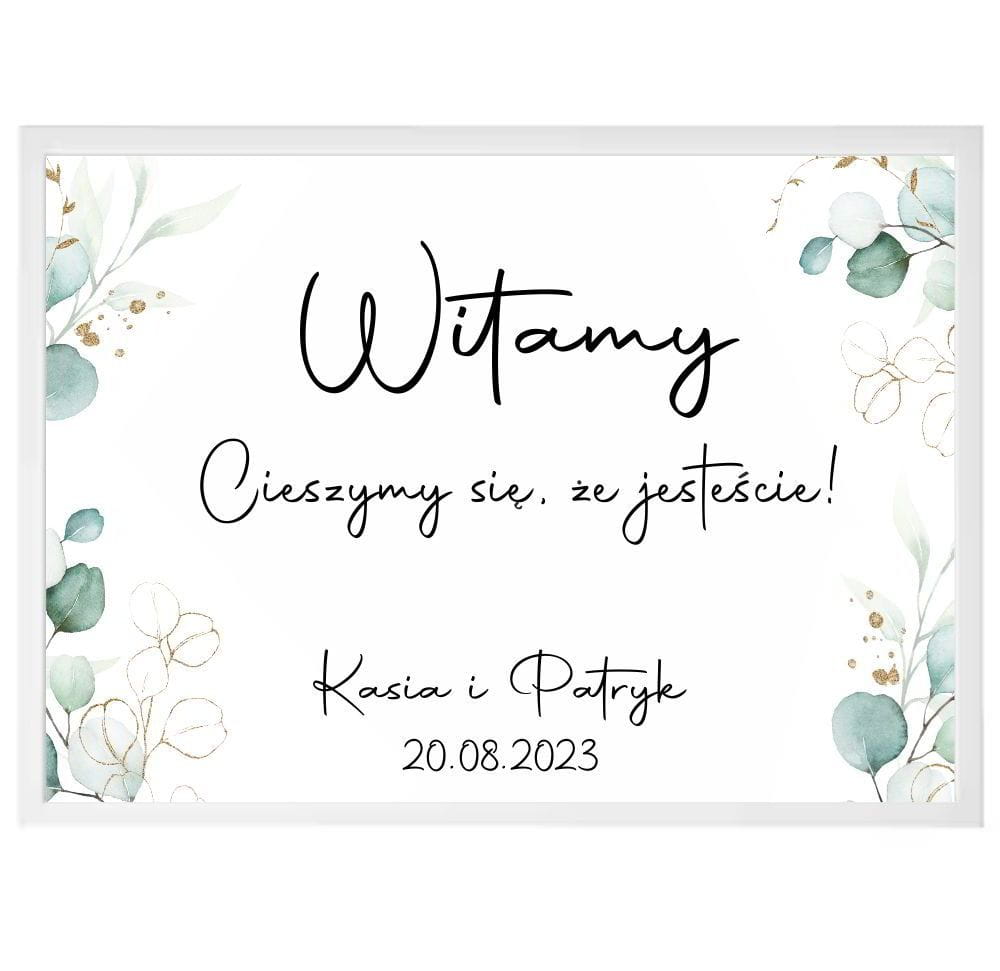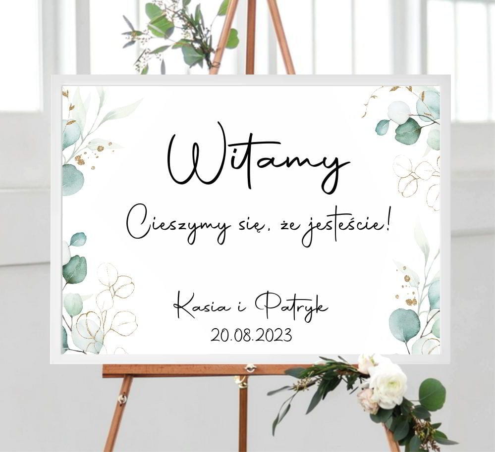 Tablica powitalna 50x70cm na ślub i wesele, tablica witająca gości weselnych z imionami Państwa Młodych i datą ślubu.