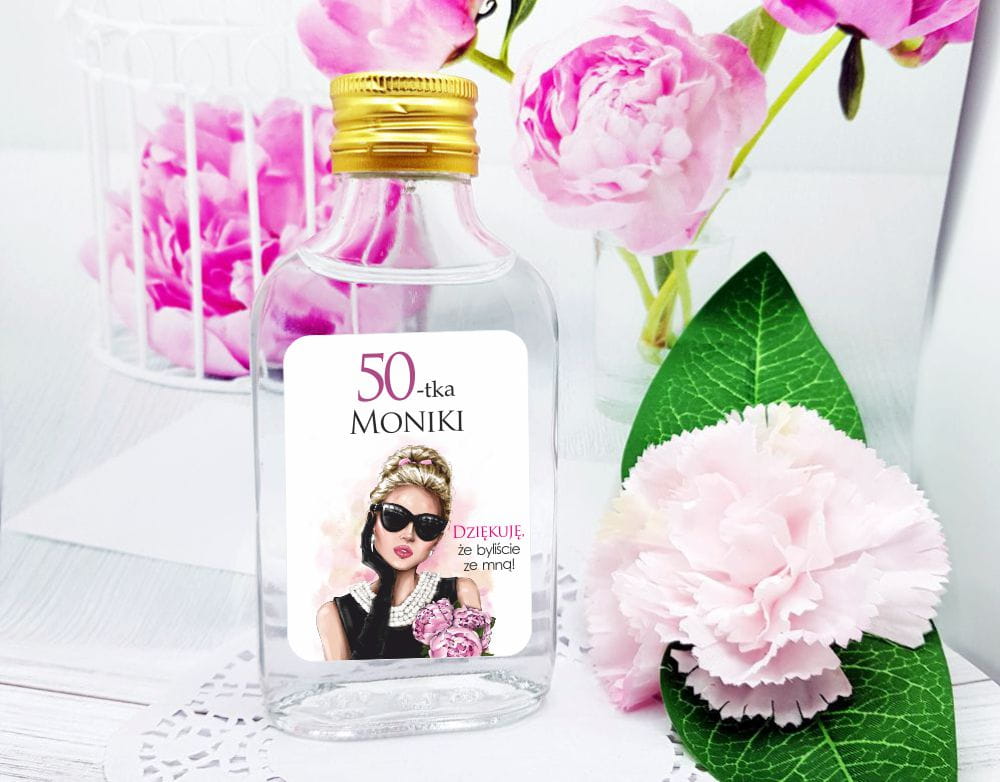Urodziny, 50ka, jubileusz, podziękowanie Butelka 100ml z naklejką SET437