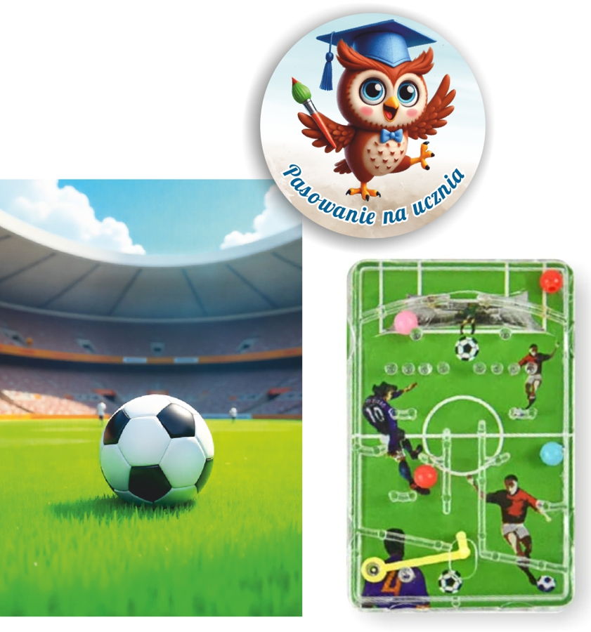 Mini Pinball „Piłka Nożna” z naklejką Pasowanie na Ucznia to prosta i wciągająca gra zręcznościowa, która rozwija koncentrację i sprawność manualną. Dzięki niewielkiemu rozmiarowi łatwo zmieści się w plecaku, a personalizowana naklejka sprawia, że staje się idealnym upominkiem na ten ważny dzień w życiu każdego pierwszoklasisty.